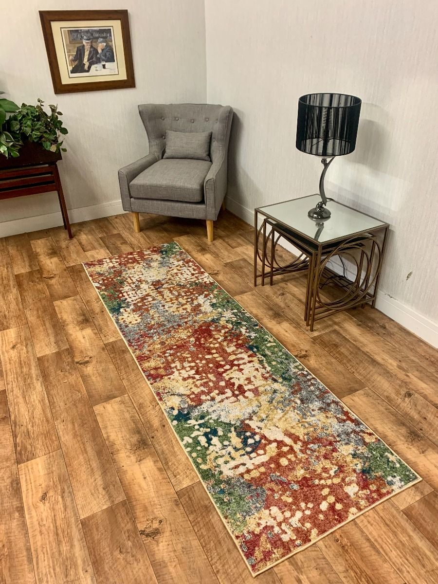 The CARNIVAL collection offers bright , multi-coloured contemporary designs in a supersoft fluffy fabric that is a joy to touch Enginered to be machine washable at 30 degrees Celsius and with a non-slip safety backing to prevent slips and trips , the CARNIVAL collection is as practical as it is beautiful . FEATURES Machine Washable at 30 degrees Celsius Non-Slip safety backing Supersoft 6mm polyester pile Total weight 1800gms metre 6 sizes available 100% foldable for easy storage