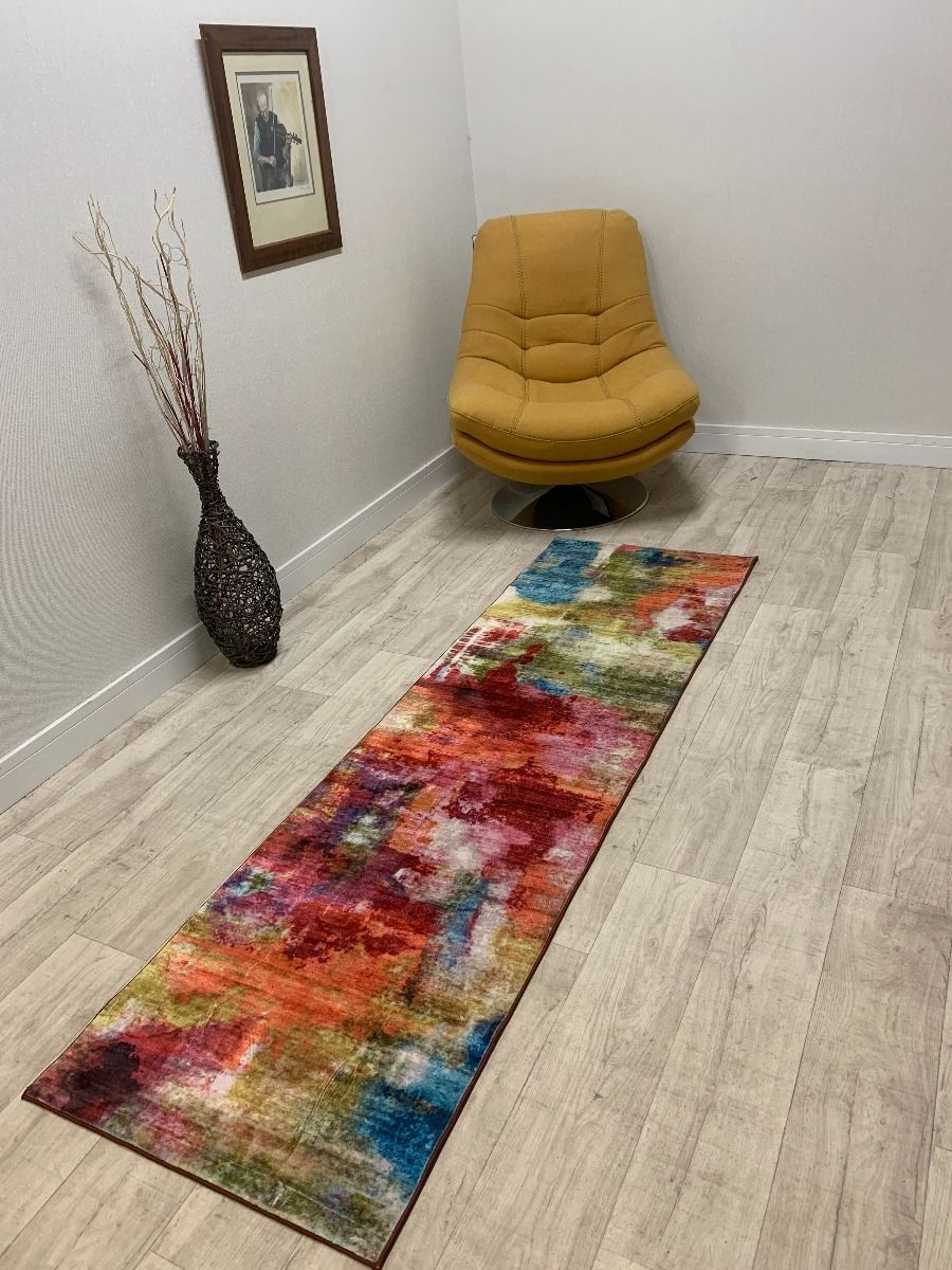 The CARNIVAL collection offers bright , multi-coloured contemporary designs in a supersoft fluffy fabric that is a joy to touch Enginered to be machine washable at 30 degrees Celsius and with a non-slip safety backing to prevent slips and trips , the CARNIVAL collection is as practical as it is beautiful . FEATURES Machine Washable at 30 degrees Celsius Non-Slip safety backing Supersoft 6mm polyester pile Total weight 1800gms metre 6 sizes available 100% foldable for easy storage
