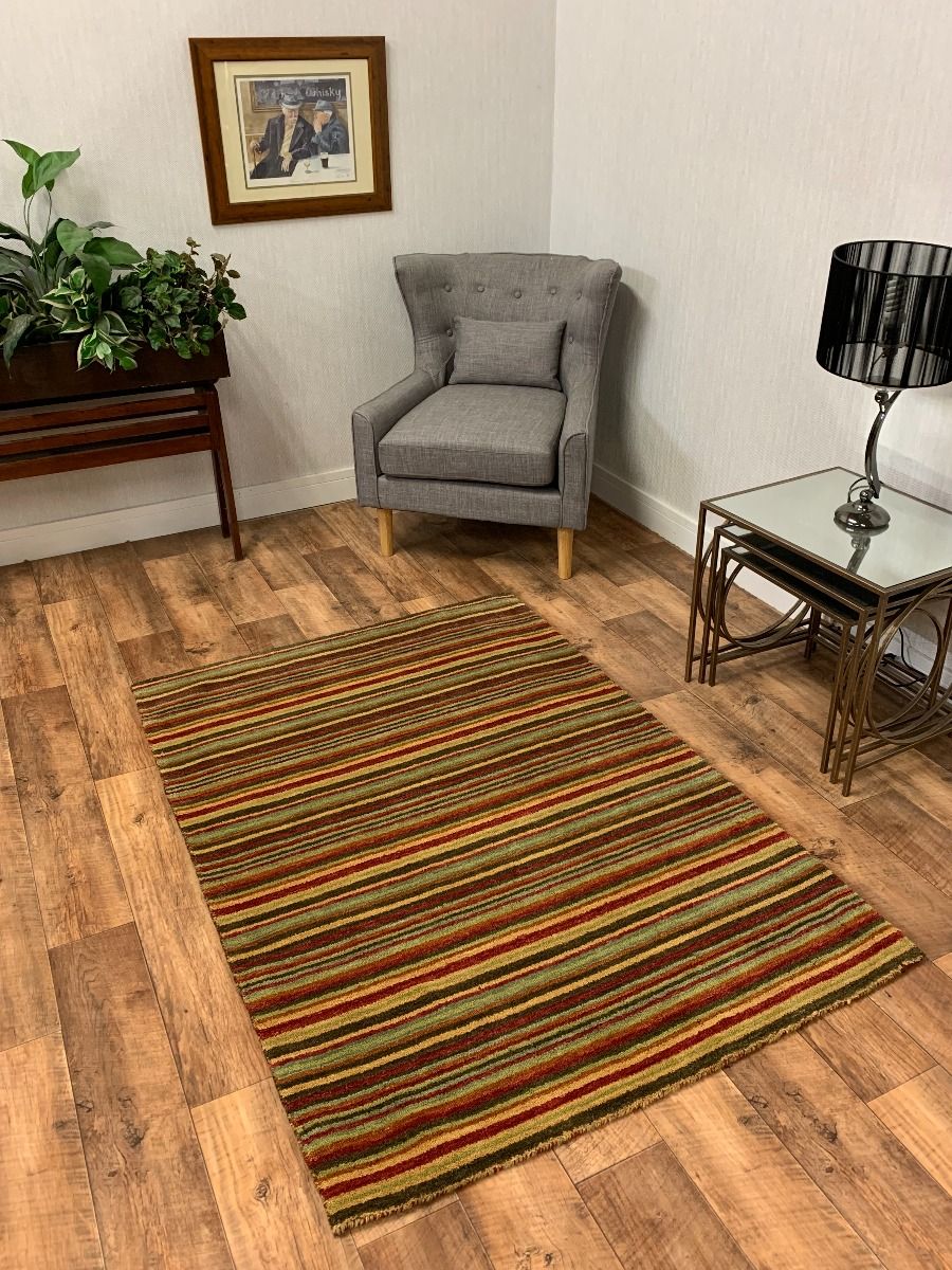 This popular striped rug is available in Red and Spice options.