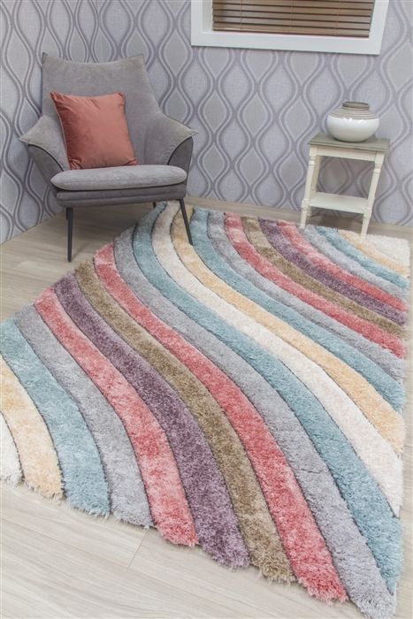 The Passion Bloom 3D shaggy rug is composed of beautiful pastel colours, showing off a 3D hand-carved floral finish, which continues to the edge stitching. Supreme quality, dynamic yet subtle colours, offering a contemporary and elegant centre point to your space.. Rug Material: Polypropylene & Polyester Colour: Multicoloured Thickness: 5cm Rug Backing: Jute