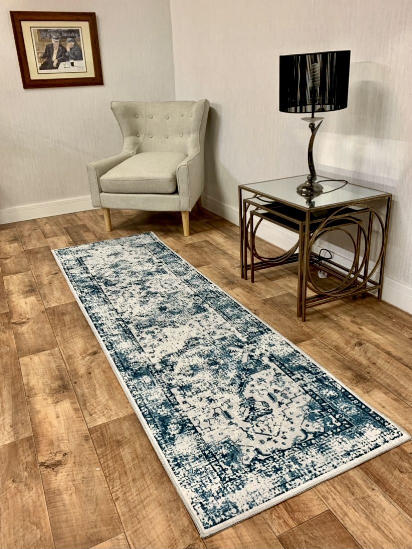 The Salerno Vintage collection is exclusively produced in Turkey for the Rug Store and More Ltd using the latest carpet technology to give a fantastic pattern definition and soft handle usually only found in luxury upmarket designer ranges. The low profile and super slimline engineering allow the rug to hug the floor, minimising slip and trip accidents. The super soft chenille pile is guaranteed for easy cleaning and guaranteed to be non-shedding. We would recommend using our Anti-Slip Miracle Hold Underlay to prevent movement on any surface. FEATURES Pile Height: 3mm Total weight per m: 1200g Pile content: 100% polyester chenille Backing: grey cotton Finishing: machine stitched on four sides