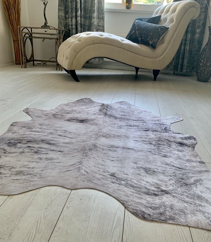 Our Texas “ faux Cowhide “ Collection offers 3 authentic natural Grey and Brown colourings plus a Zebra design which is sure to make a stylish statement in any contemporary room setting Created using the latest “ space age “ technology, these fashionable replicas are 100% Vegan friendly and have all the style and appearance of the originals at a fraction of the price. The low profile and super slimline engineering allow these beautiful rugs to hug the floor minimising slip and trip accidents while the supersoft polyester pile is designed for easy cleaning and guaranteed to be non-shedding. Cowhide prints look uber chic on the floor , hung on the wall or draped over furniture making them a favourite of interior designers .With our fantastic low prices it’s never been easier to create a designer look to any interior We would recommend using our anti-slip Miracle Hold underlay to prevent movement on any surface FEATURES • PILE HEIGHT 3mm • TOTAL WEIGHT 1200gms per metre • PILE CONTENT 100% Polyester Chenille • BACKING Anti-Slip natural backing