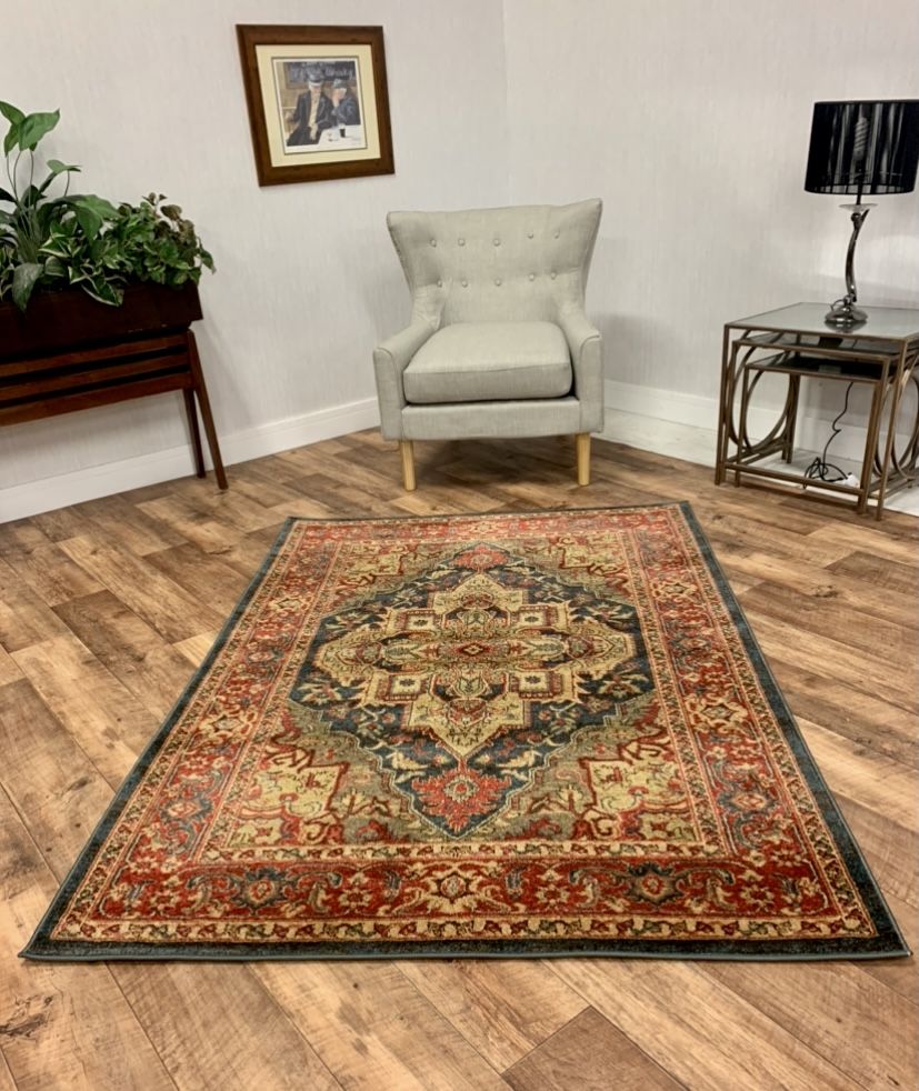 The Ziegler collection is the original and probably still the best machine-made reproduction of the classic Persian styles of the 19th Century The rich and vibrant tones of Rust, Ochre and Blue take inspiration from the Aztec and native American designs of South West USA and add warmth and depth to both classical and more contemporary interiors. Power-loomed by Turkish master craftsmen using Eazylon Fibres , these Ziegler rugs are highly durable ,anti-static ,soft to touch and guaranteed non shedding.
